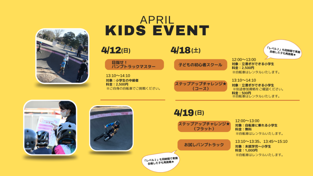 4月もPIST6 PUMPTRACK CHIBA(PPC)にて、お子様向けイベントを開催いたします!