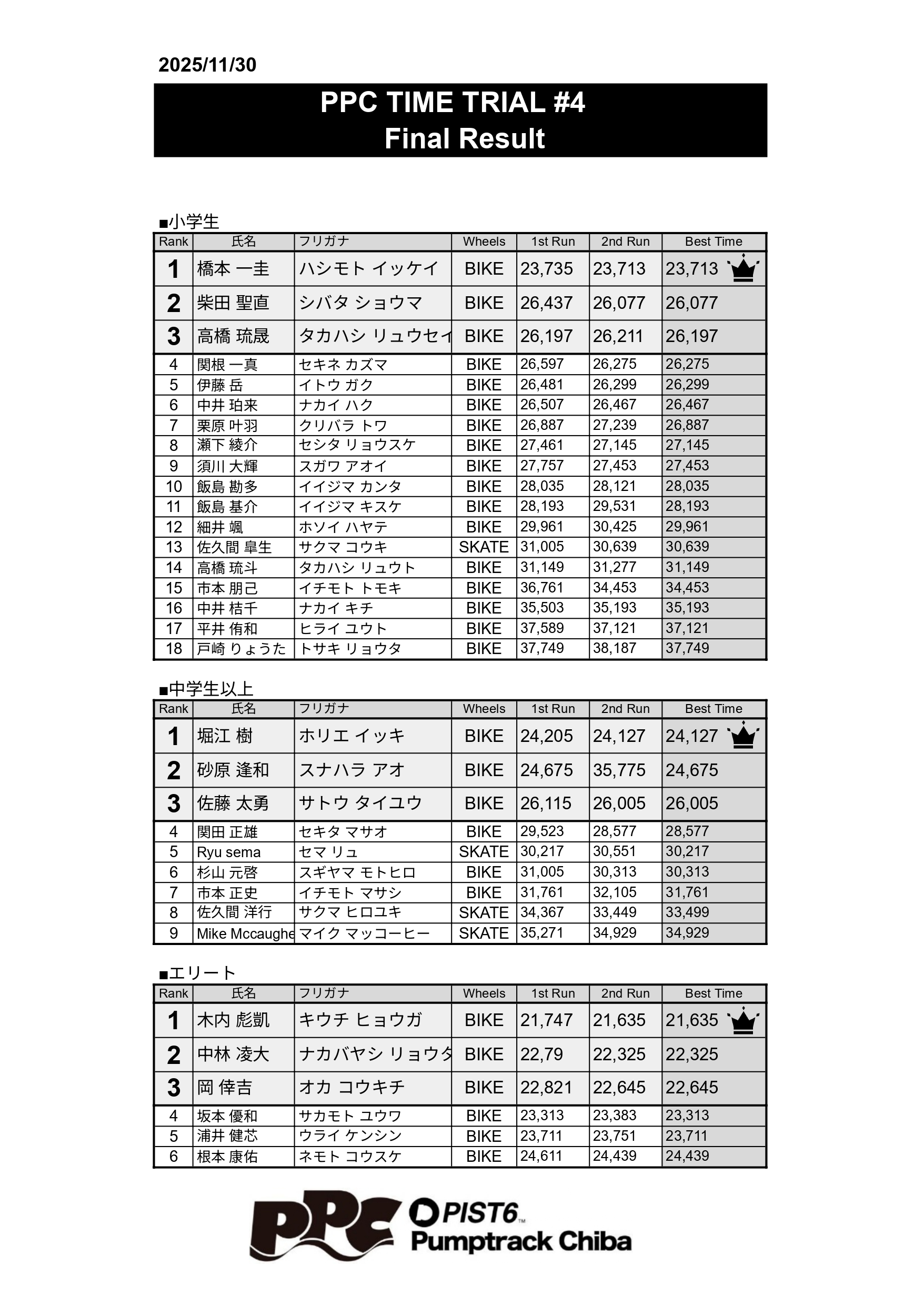【11月30日】『PUMPTRACK SPECIAL CLINIC』『PPC TIMETRAIAL#4』開催!※リザルト公開