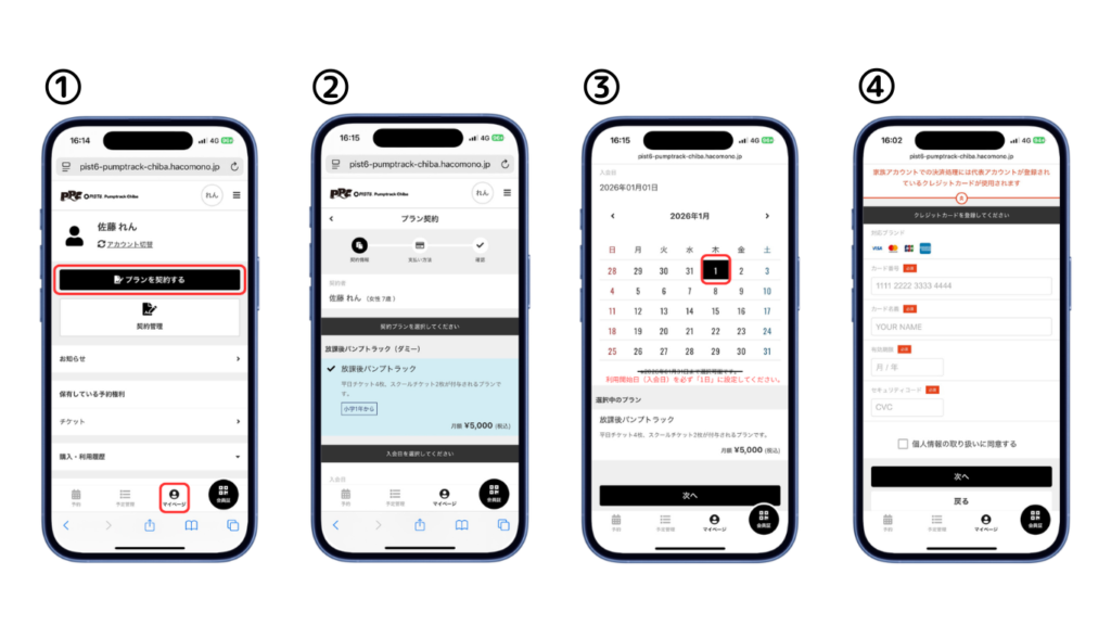 マイページの「プランを契約する」から、お客様ご自身で入会手続きを行っていただきます。