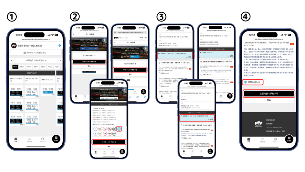 保有チケットを使って、PPC予約サイト(hacomono)から予約します。