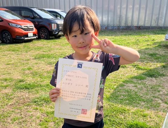 BMXレースデビュー戦でいきなりの1位!「以前参加したキックバイクレースでは、表彰台に上がれなかった悔しさを胸に、今回1位を獲れて嬉しかった!」と語っていた。「もっと速く走れるように!」「ジャンプもしたい!」と溢れんばかりの向上心で今後の活躍に期待大👑